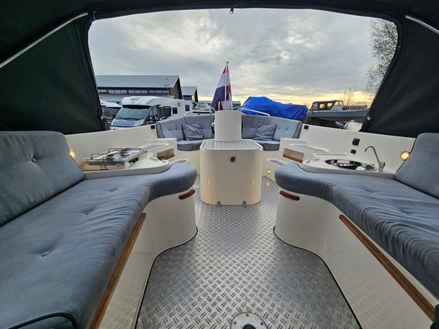 Deze goed onderhouden Zarro Master 22WB combineert robuuste kwaliteit met luxe comfort. Met zijn karakteristieke lijnen, geïnspireerd op klassieke Oostzee reddingsboten, valt deze zwarte sloep direct op. De boot is dubbelwandig, onderhoudsarm en blijft dankzij de royale breedte en verzwaarde scheg zeer stabiel liggen op de golven.